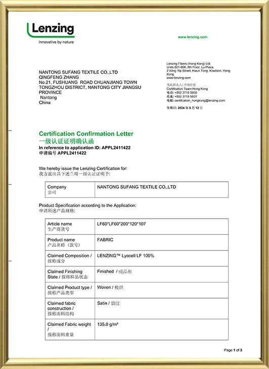 Deimhniú lenzing tencel