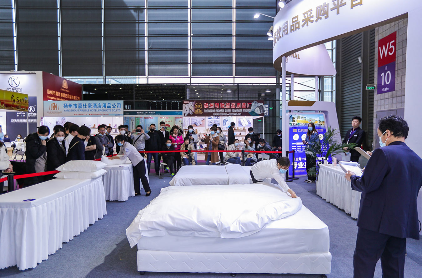 Shanghai Idirnáisiúnta Fáilteachais Deartha & Soláthairtí Expo - Comórtas Tí Óstáin - Shanghai Idirnáisiúnta Fáilteachais Dearadh & Soláthairtí Expo. Reáchtáiltear an comórtas le go bhféadfaidh coimeádaithe tí óstáin dul san iomaíocht i ndéanamh leapacha, comhdhéanta de leatháin, cuilteanna, agus piliúir, a léiríonn a n-inniúlacht sa tseirbhís. Cabhraíonn sé le foireann an óstáin scileanna bainistí a mhalartú agus cuireann sé chun cinn forbairt an mhargaidh soláthairtí óstán.