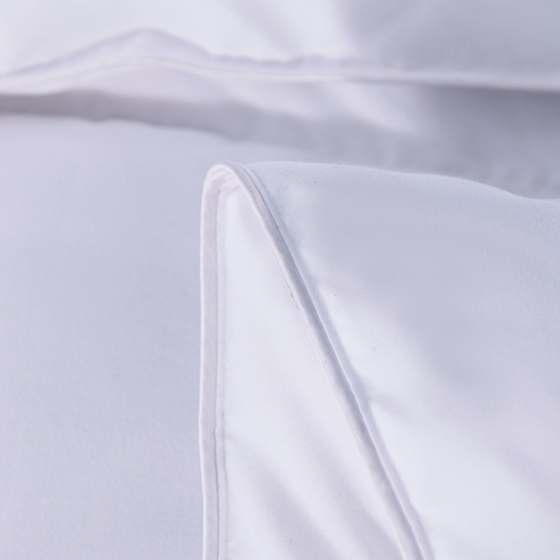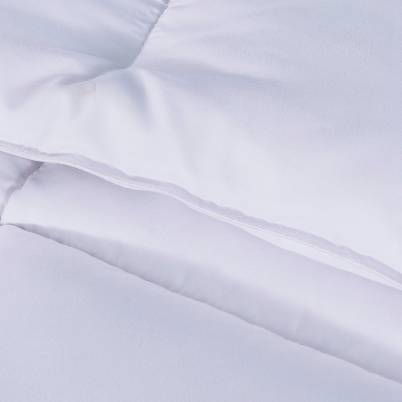 Tá fabraic seachtrach an chuilt seo déanta as poileistear 100% ardchaighdeáin le grammage 130gsm. An nóiméad a dteagmháil leat é, beidh tú ag mothú láithreach a uigeacht shíoda réidh, íogair agus neamhdhíobhálach don chraiceann. Murab ionann agus roinnt cuilteanna garbh nó noisy, íoslaghdaíonn ár bhfabraic, ar a dtugtar "Fabraic Tost," torann cuimilte, ag cinntiú nach gcuirtear isteach ar do chodladh fiú ag an fhuaim is lú. Gnéithe sé dearadh cuilteála checkered, le gach cearnóg ríomh go beacht agus fuaite go cúramach chun a chinntiú go bhfuil an líonadh microfiber dháileadh go cothrom ar fud an chuilt. Coscann an dearadh seo go héifeachtach an líonadh ó aistriú, clumping, nó bunching le linn úsáide, ag cinntiú lochta agus teas iomlán an chuilt.